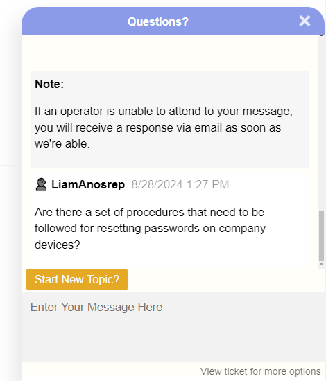 Once configured, you can also open a ticket through email. Once you have the POP3 settings configured, then you should be able to email the specified mailbox and the site will pick that up and open a ticket for the email. Likewise, so long as the "From Email" in Main Settings is set up correctly, then replies to that email can be routed to the same mailbox and will then be picked up and added as comments on the ticket, indicated through the subject.