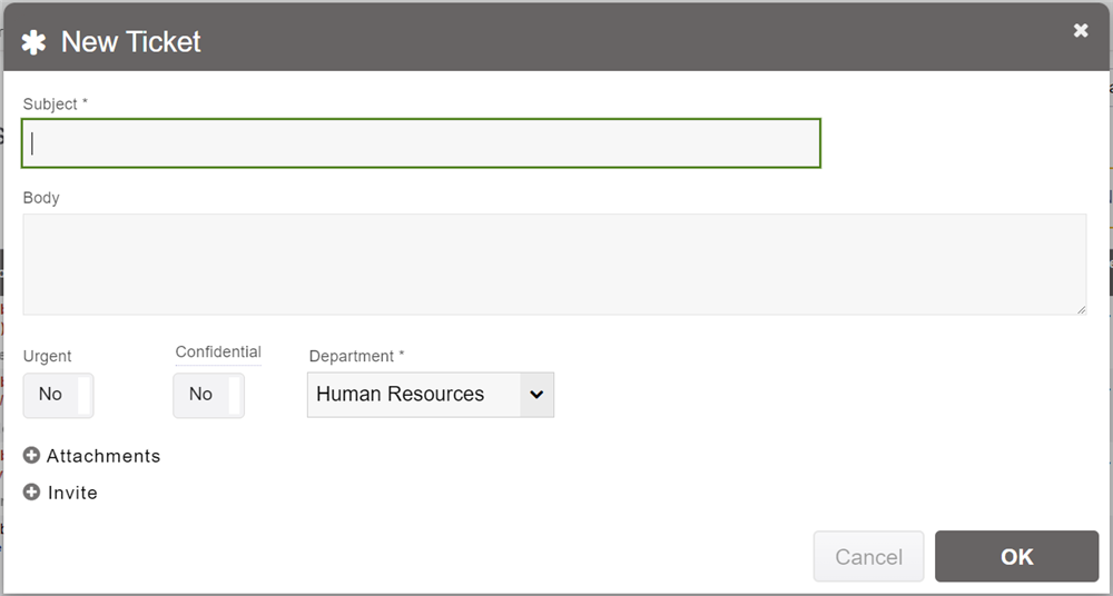 Clicking upon the New Ticket button starts the process of a new ticket.