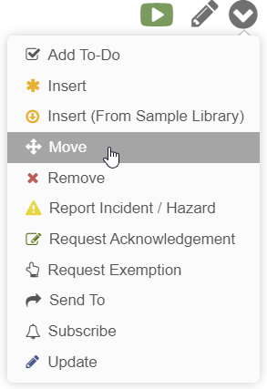If you determine that an article was put in the wrong location, you can use the Move action to relocate that article. You do this from the actions dropdown menu for that article.