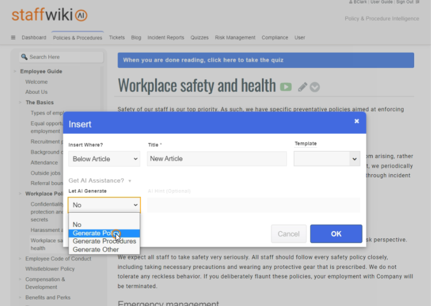 Imagine, for a moment, being able to create a comprehensive policy from scratch in a matter of seconds, without sacrificing quality or attention to detail. With StaffWiki and the power of its AI integration, that's been made possible.
