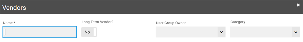 Once you are in the Document Management area, you will use tabs for Vendors, Internal Departments, and Clients. Click on the appropriate tab, and then click the "+" button on the right side to add a new entry. This will bring up a form with fields specific to vendors, clients or internal departments - but they will all have a "User Group Owner" and "Category" field:
