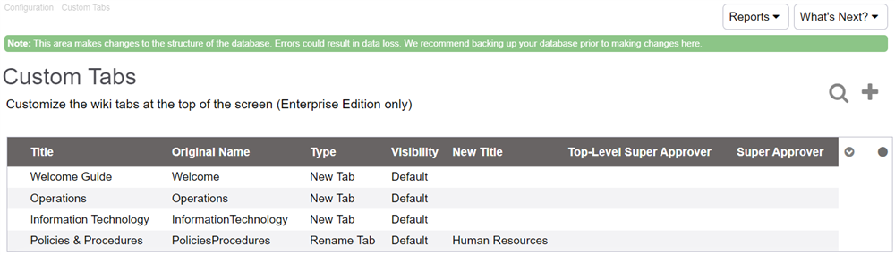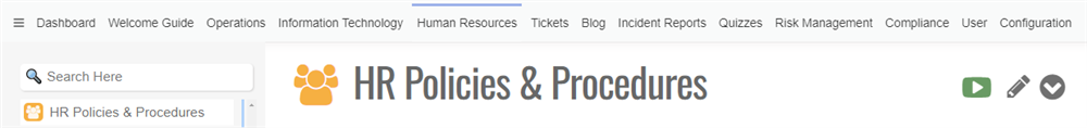 By default, the site will come with tabs for Policies & Procedures, along with other tabs such as News or Blog, and - if enabled - Client Policies. In some cases, however, you may need to have tabs created for other purposes: for example, a tab for each department. You may also want to make sure only certain tabs are visible for certain users. This is why we provide the Enterprise Edition add-on.