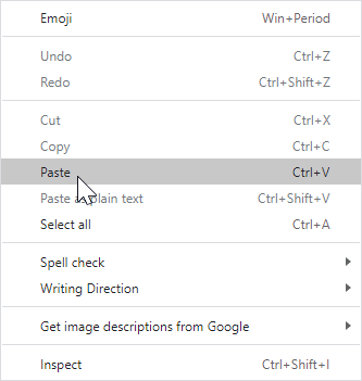 Next, go to your text editor where you want to insert the image. You can then right click and select "Paste". Alternatively you can press Ctrl+V (on Windows) on your keyboard to paste the image.