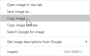 The simplest way to insert an image is to copy an existing image into the clipboard and then paste it into the text editor. You can do this using the context menu: right click an existing image and select "Copy". You can also use the keyboard and press Ctrl+C (on Windows) to put an image into the clipboard.