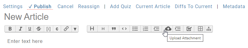 Another way is using the upload button. Attaching an image using the 'Upload Attachment' button, found on the content toolbar, inserts an image that is saved to the cloud or local server hosting your site.
