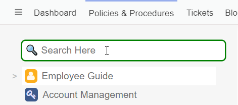 The search box (sometimes called search bar) is sometimes the quickest way to navigate to a relevant policy or procedure. This is located above the navigation of a wiki tab.