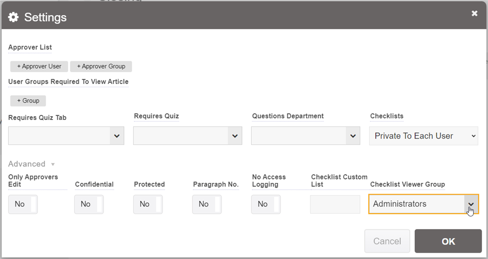 To do this, go to the Settings on the page you are editing, and simply select a user group under "Checklist Viewer Group":