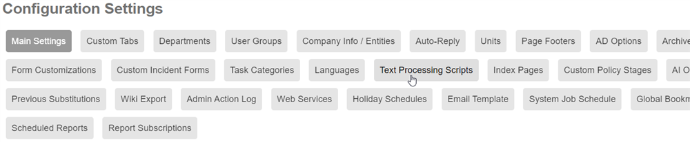 To create Text Processing script, you'll need to login as an administrator. Then go to the Configuration tab, and click on "Text Processing Scripts":