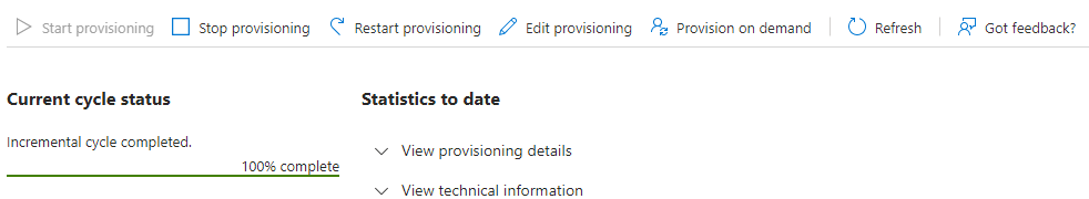 Eventually, it will say "Incremental cycle completed". Any errors will be displayed in the "View Provisioning Details".