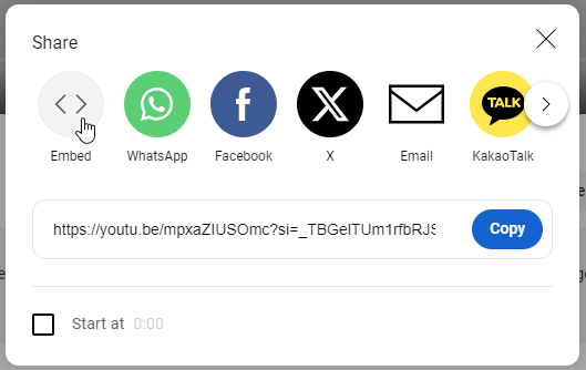 A 'Share' prompt will present itself. Click on 'Embed' to proceed.