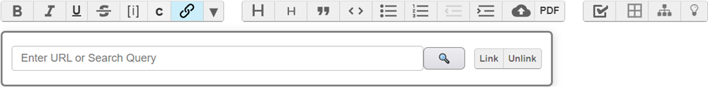 - or optionally, click on the magnifying glass (or ... in previous versions) to select an article within your site via a drop down menu to make an internal link.