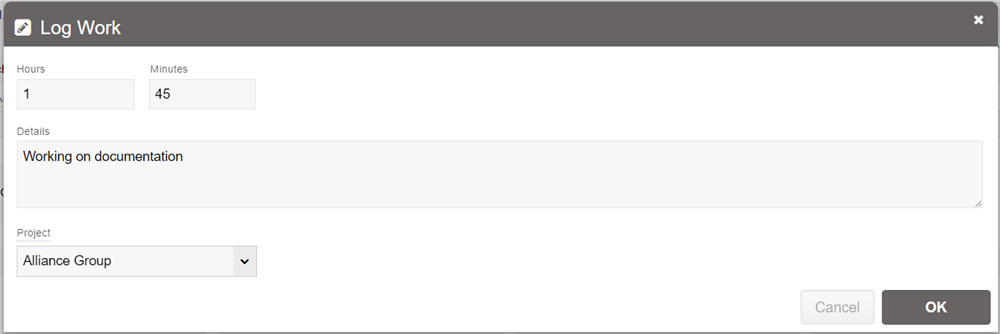 In this form you can also select a project to relate to the work that is logged. The project can be defined by going to the Work Log Projects section under the Configuration tab (you must be admin to edit this list). You can also create sub-projects in that list, in a hierarchy.
